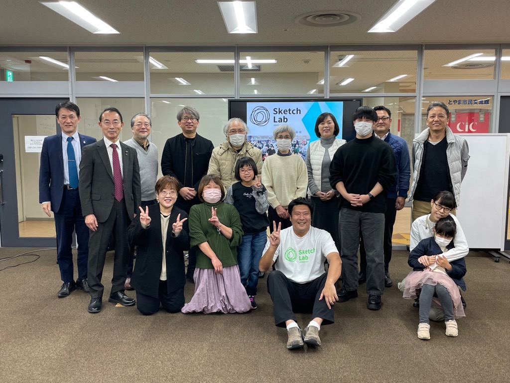 令和5年11月25日(土曜日)に、市民共創による取組みについて学ぶため、富山市の「未来共創拠点Sketch Lab(スケッチラボ)」に市民の皆さんと一緒に視察に行き、富山市スマートシティ推進課の中村さんより取組み内容についてお話を伺いました。