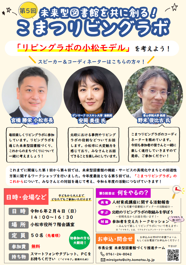 「第5回未来型図書館を共に創る!こまつリビングラボ」のチラシのダウンロードはこちらから(PDFファイル:573.4KB)
