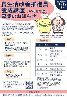 【募集】令和8年度 食生活改善推進員養成講座