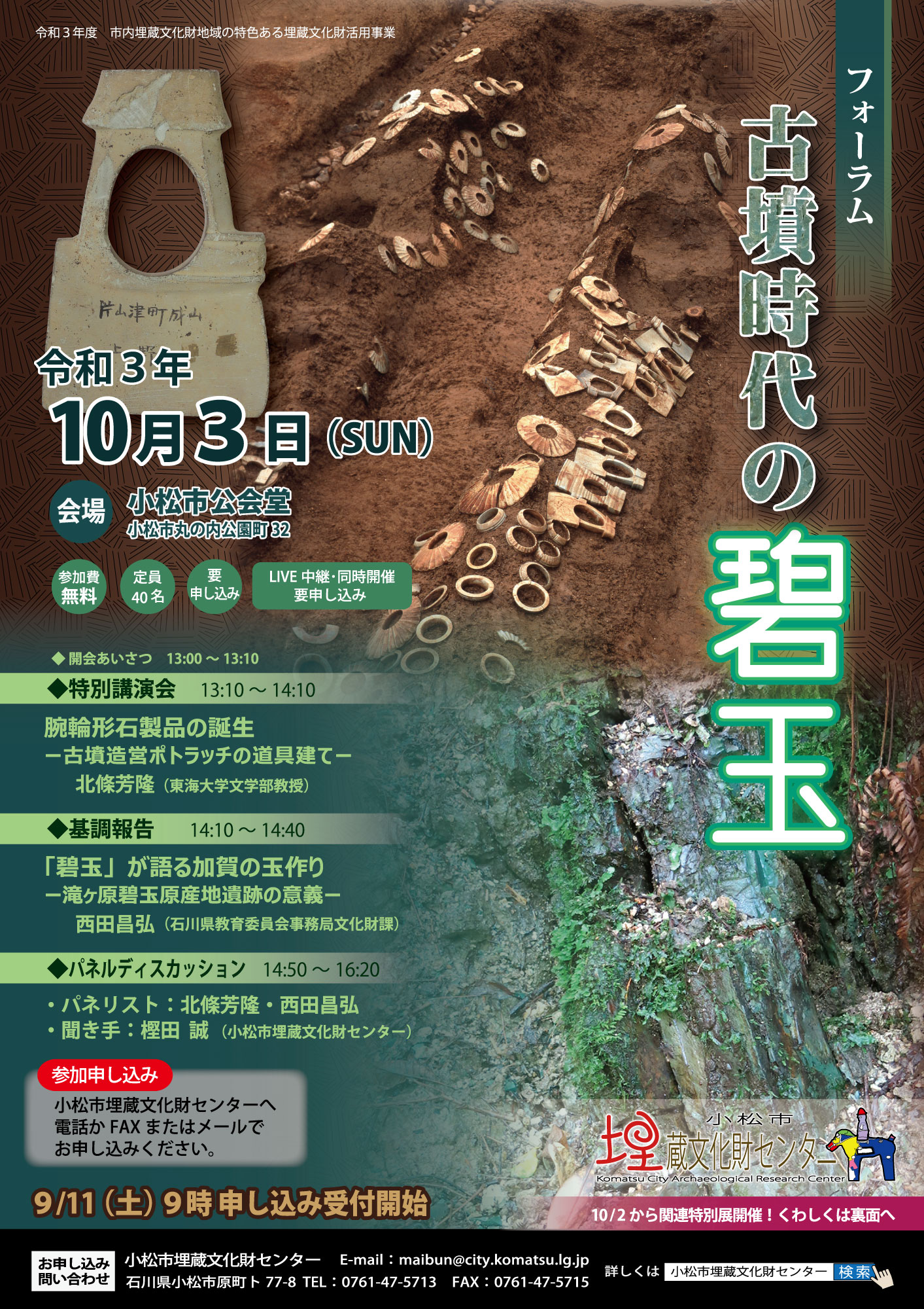 問い合わせ・申し込み先:小松市埋蔵文化財センター