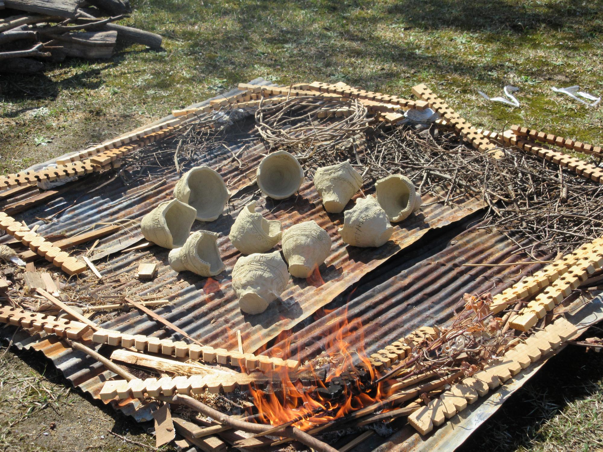 小松市埋蔵文化財センターでは、縄文土器や弥生土器づくり体験で作成したみなさんの作品を、縄文土器は「開放焼き」、弥生時代は「覆い焼き」と呼ばれるそれぞれの時代に応じた焼き方で行っています。