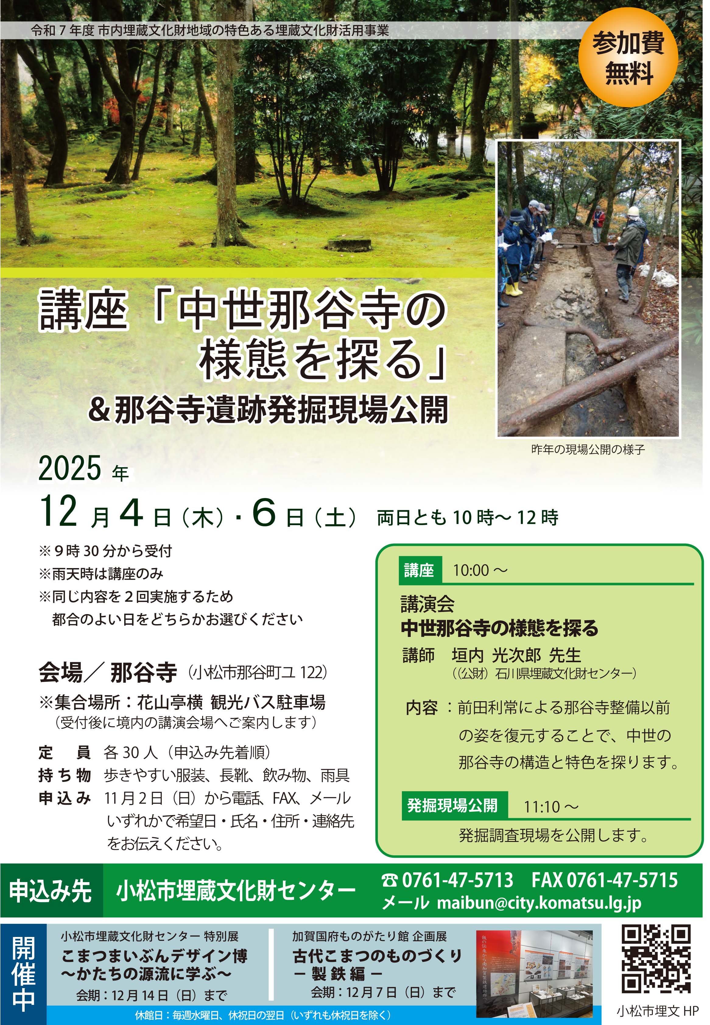 講座「中世那谷寺の様態を探る」&那谷寺遺跡発掘現場公開