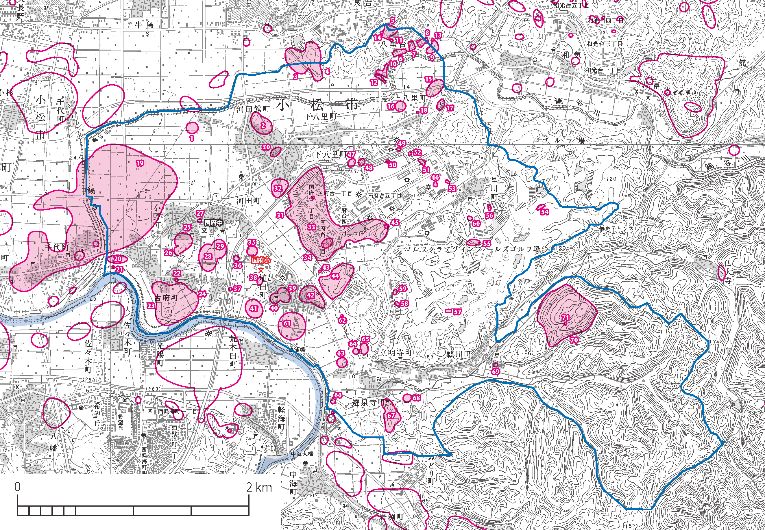 | 24 | 南野台遺跡 | 縄文・古墳~鎌倉室町[散布地] | 加賀国府関連遺跡(府南社(総社)推定地) | 059 | |
