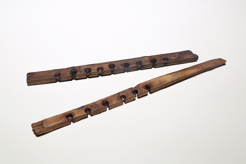 弥生時代後期から古墳時代前期を中心とする大集落。大溝と川で区画された区域には、古墳時代初め頃のひさしのついた建物や水に関係する施設など特別な建物跡が見つかり、平野をおさめた首長の居館[きょかん]と考えられています。大溝からは大量の木製品が出土していて、農工具をはじめ、容器や武器・武具(槍の鞘[さや]や楯)、腰かけ、火おこしの道具(火きり臼)、舟の部材など、さまざまな種類があります。呪術的な文様が彫られた装飾品や、鳥形・舟形などお祭りや儀式に使われたものも見つかっています。