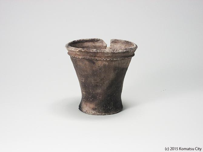- 特記:中期、木製品模造品、口縁一部欠損、蓋用有孔耳有